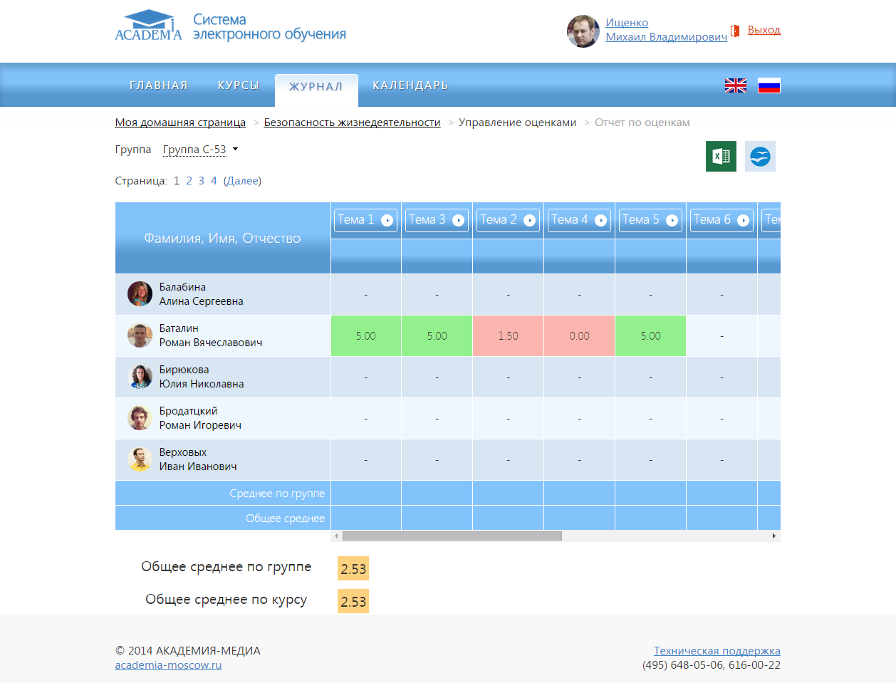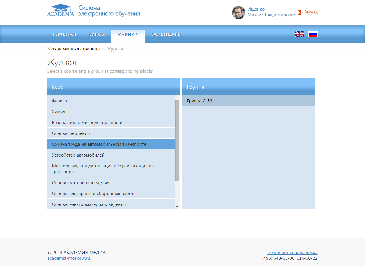 | 4.5.1. Журнал Студента | Перейти к оглавлению | 4.6. Раздел «Календарь» |