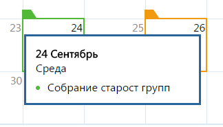 При наведении курсора на отмеченную дату всплывает небольшое окно, в котором отображается список событий, запланированных на эту дату (рис. 35).