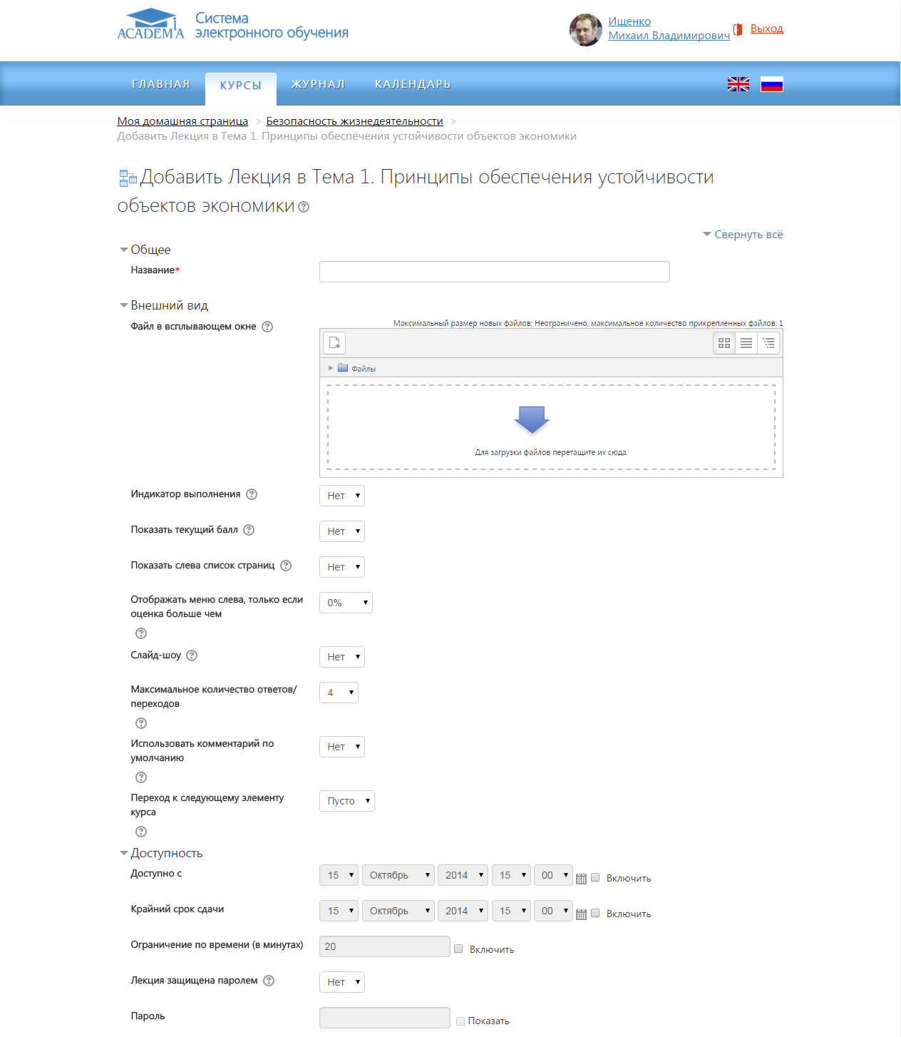 Рассмотрим страницу редактирования настроек Лекции (рис. 75, 76).