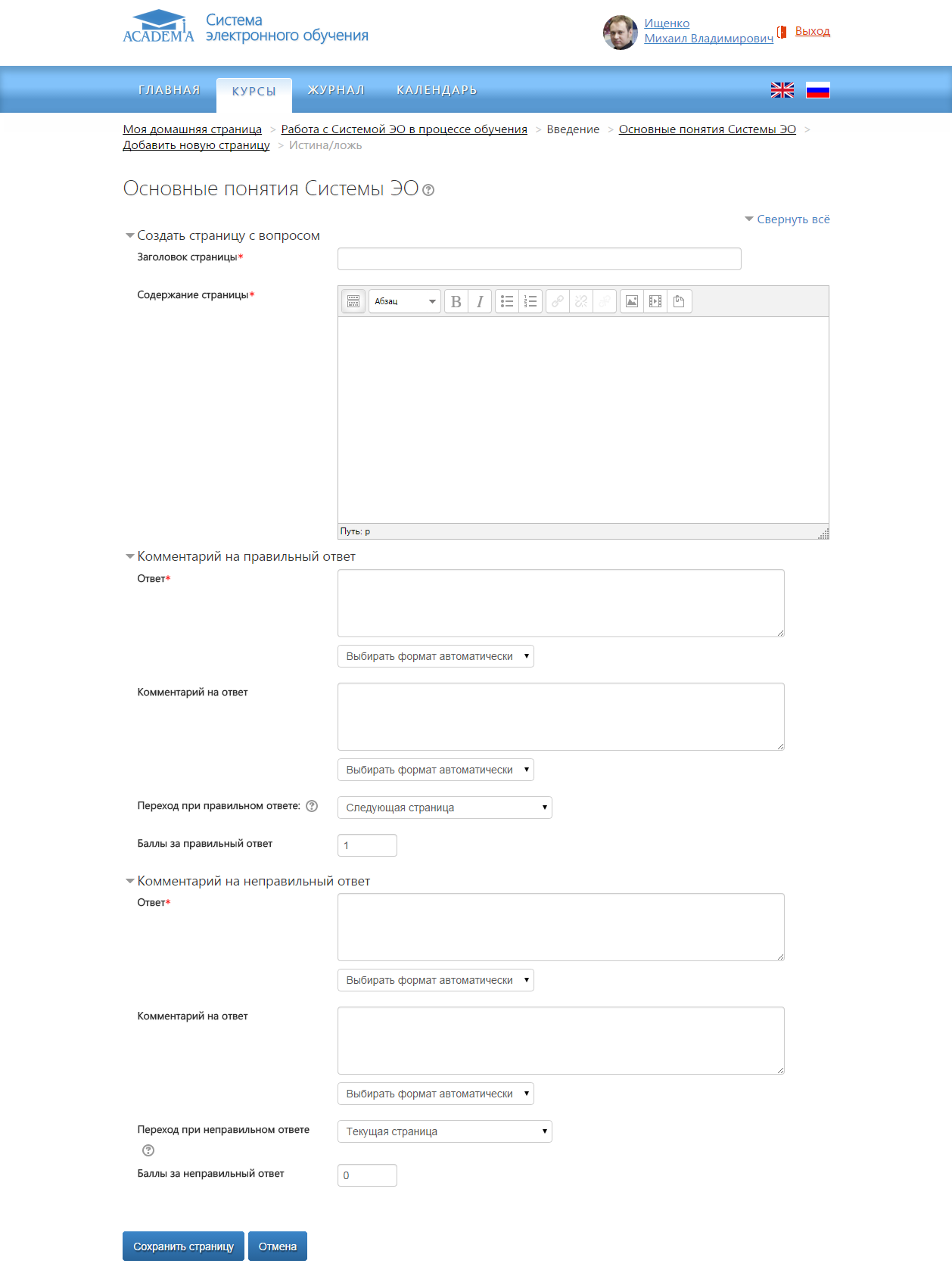 Рис. 83. Страница редактирования вопроса «Истина / Ложь»