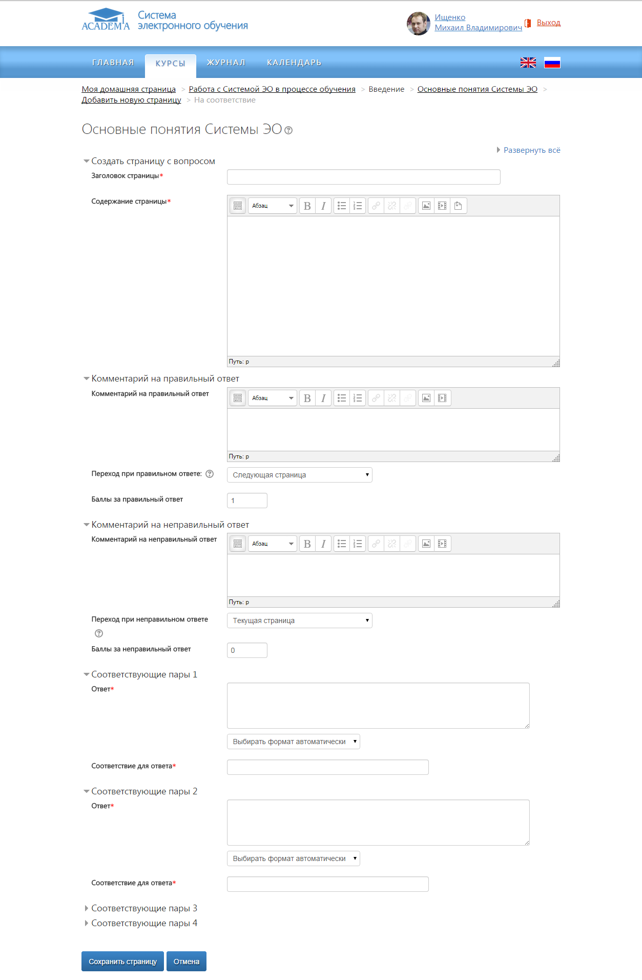 Рис. 86. Страница редактирования вопроса «На соответствие»