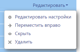 При клике на ссылку «Редактировать» открывается выпадающее меню с инструментами редактирования учебного элемента. Эти инструменты описаны ниже |